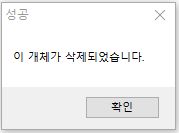 그럼 삭제됐다는 메세지창이 뜨는데 확인을 누루면