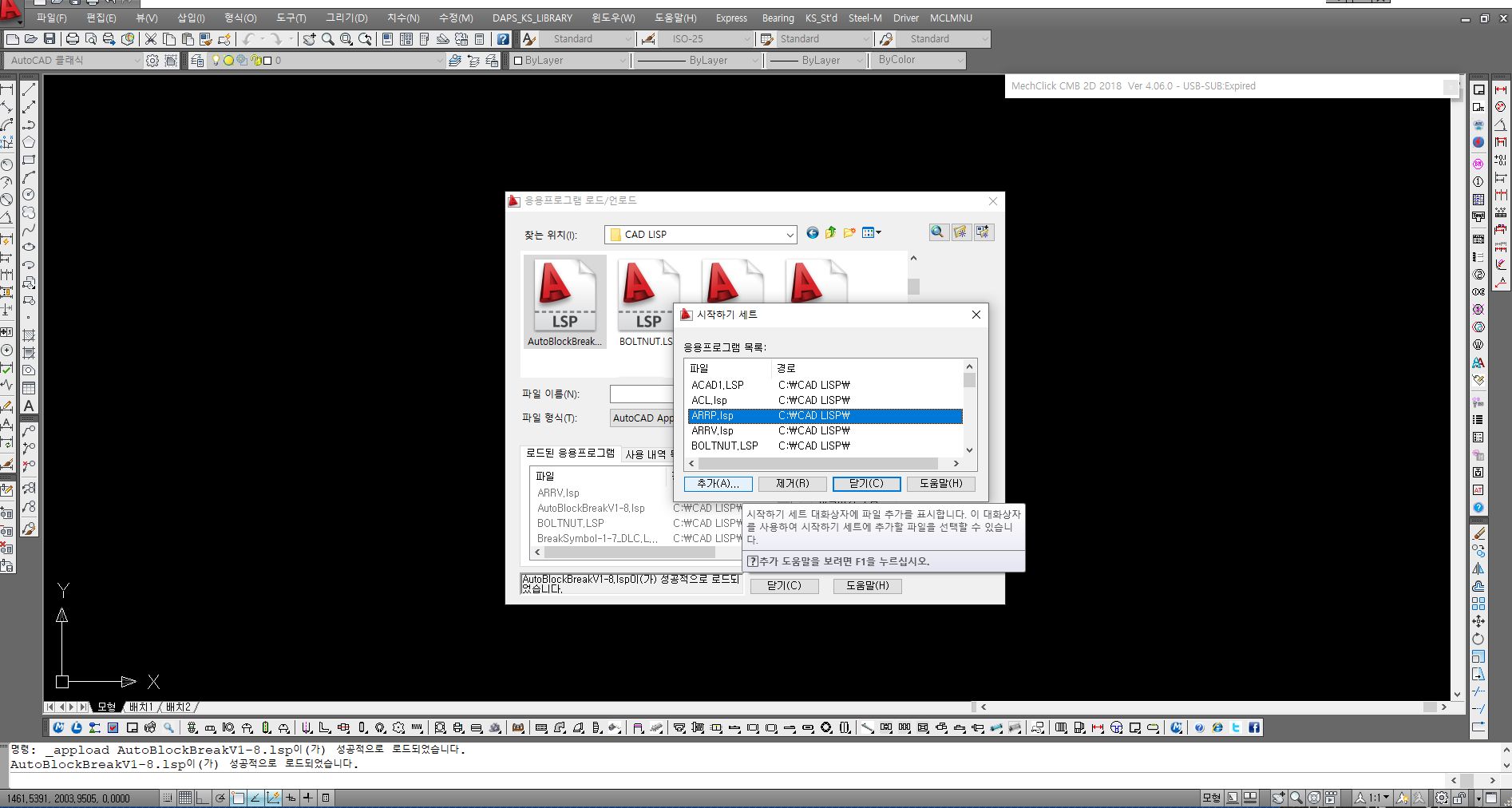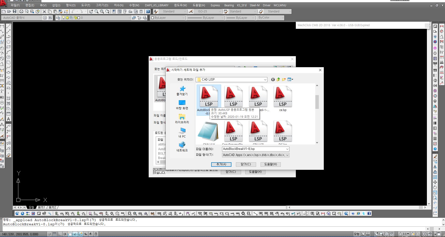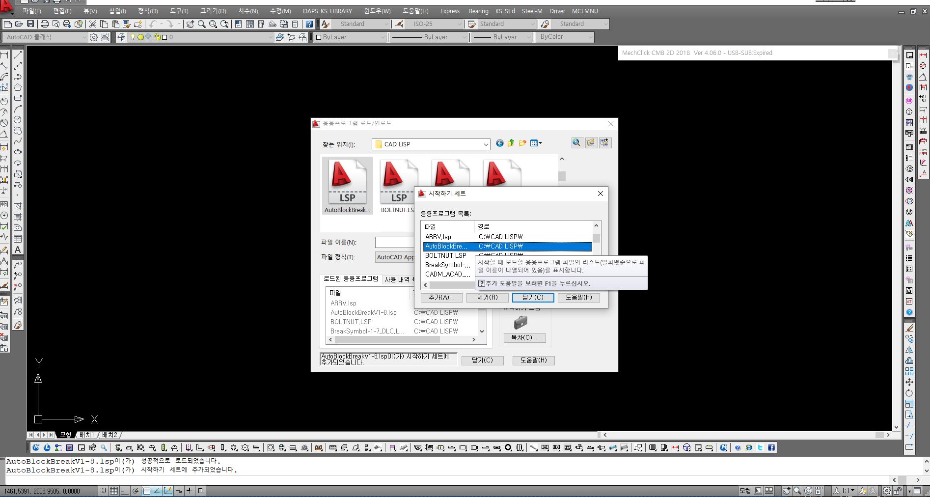 등록된 리스습은 캐드를 실행시킬때마다