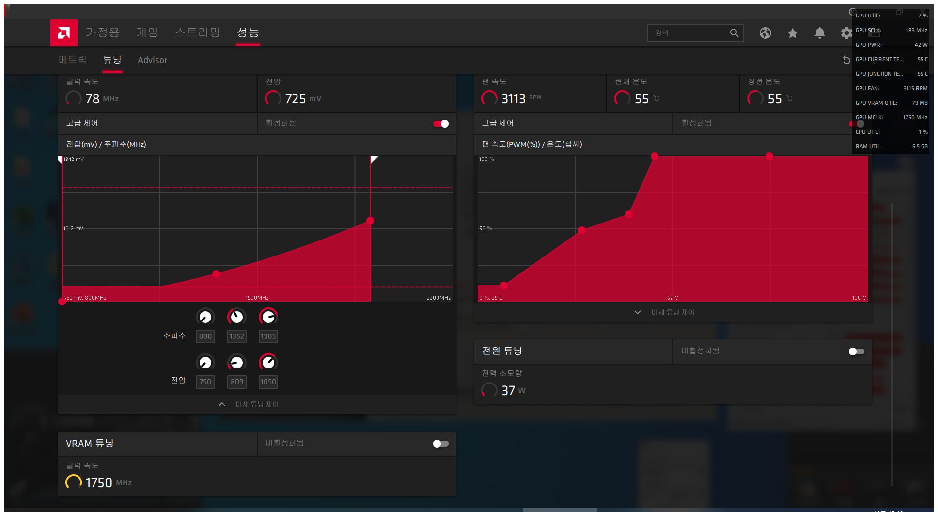 그래픽카드 언더볼팅하고 안정화되있다는 전제 조건이 필요하다