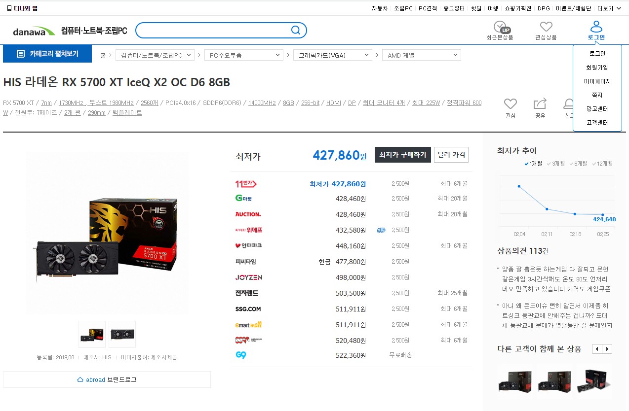 컴퓨터관련 부품은 무조건 다나와 검색해서 구매