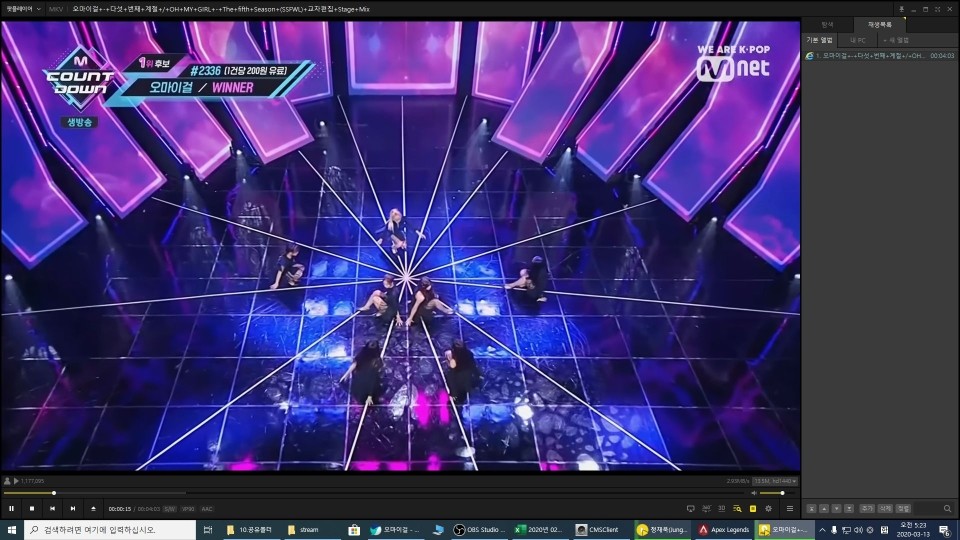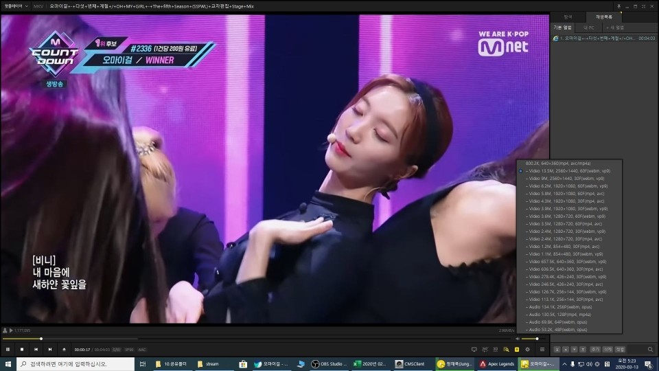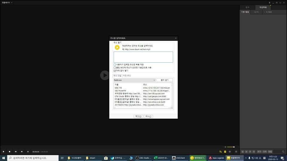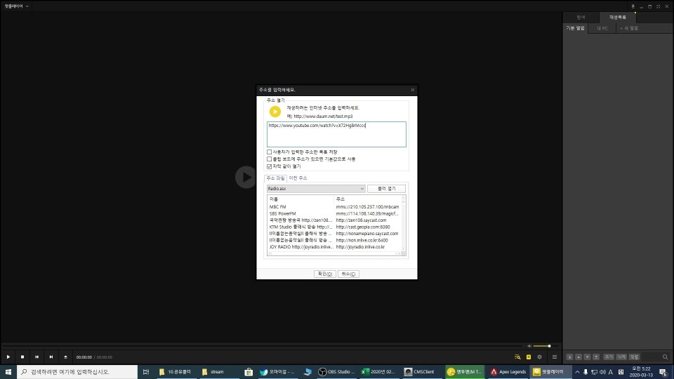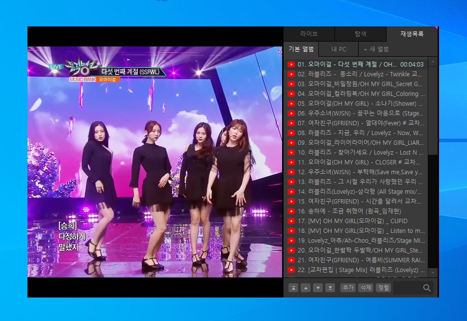 카카오팟플레이어로 재생목록에 동영상주소 넣고 재생하면 됨